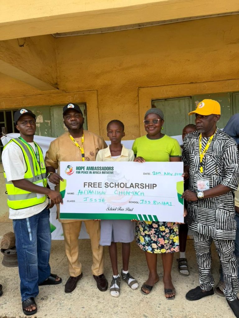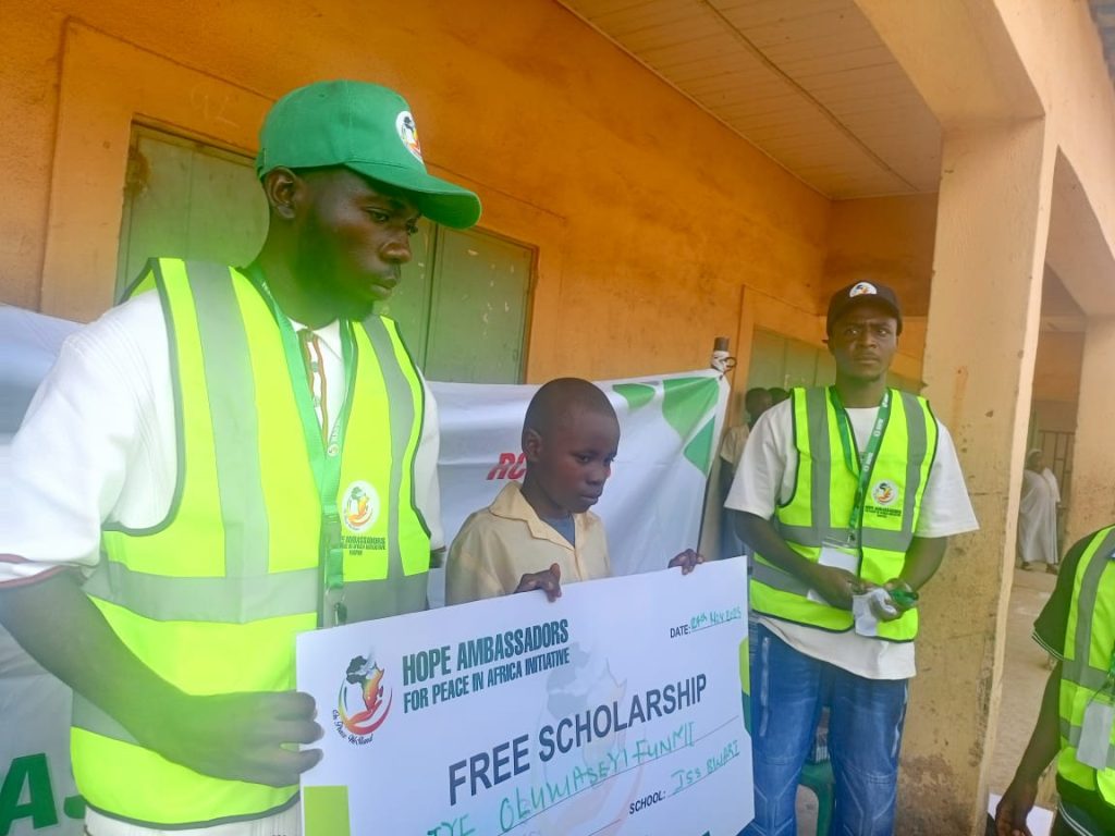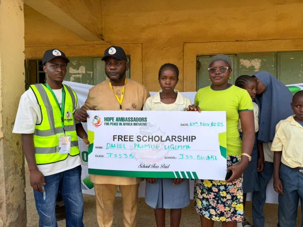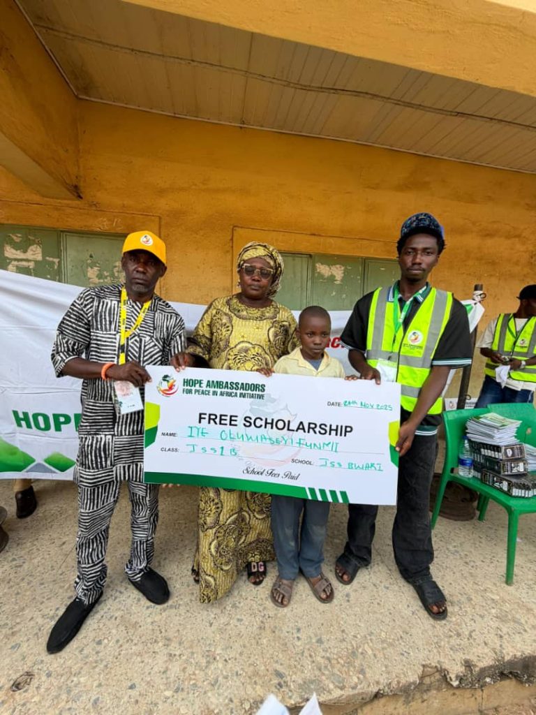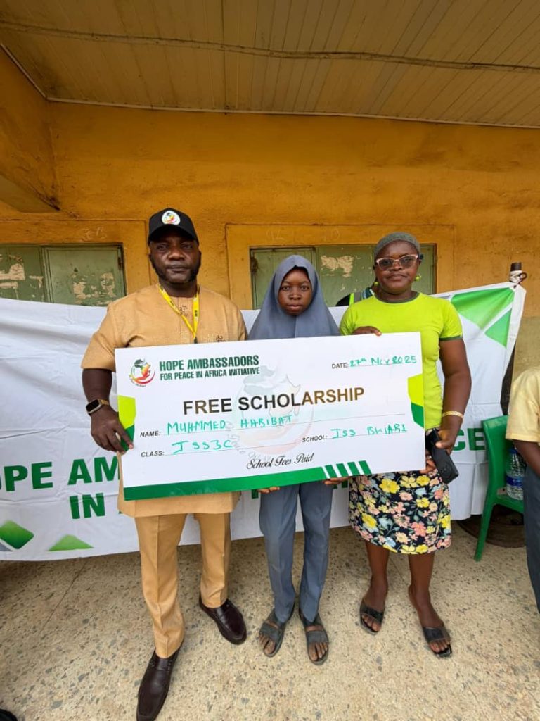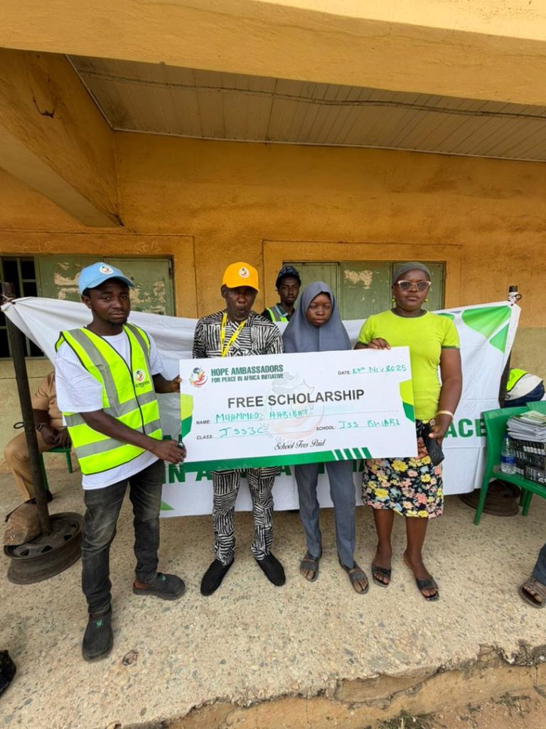 As part of our commitment to youth empowerment and quality education, the Hope Ambassadors for Peace in Africa Initiative (HAPAI) proudly supported deserving students in government secondary schools in Abuja with free scholarships to cover fees, free school uniforms to promote dignity and equal participation, and free writing materials including exercise books, pens, and notebooks for effective learning.